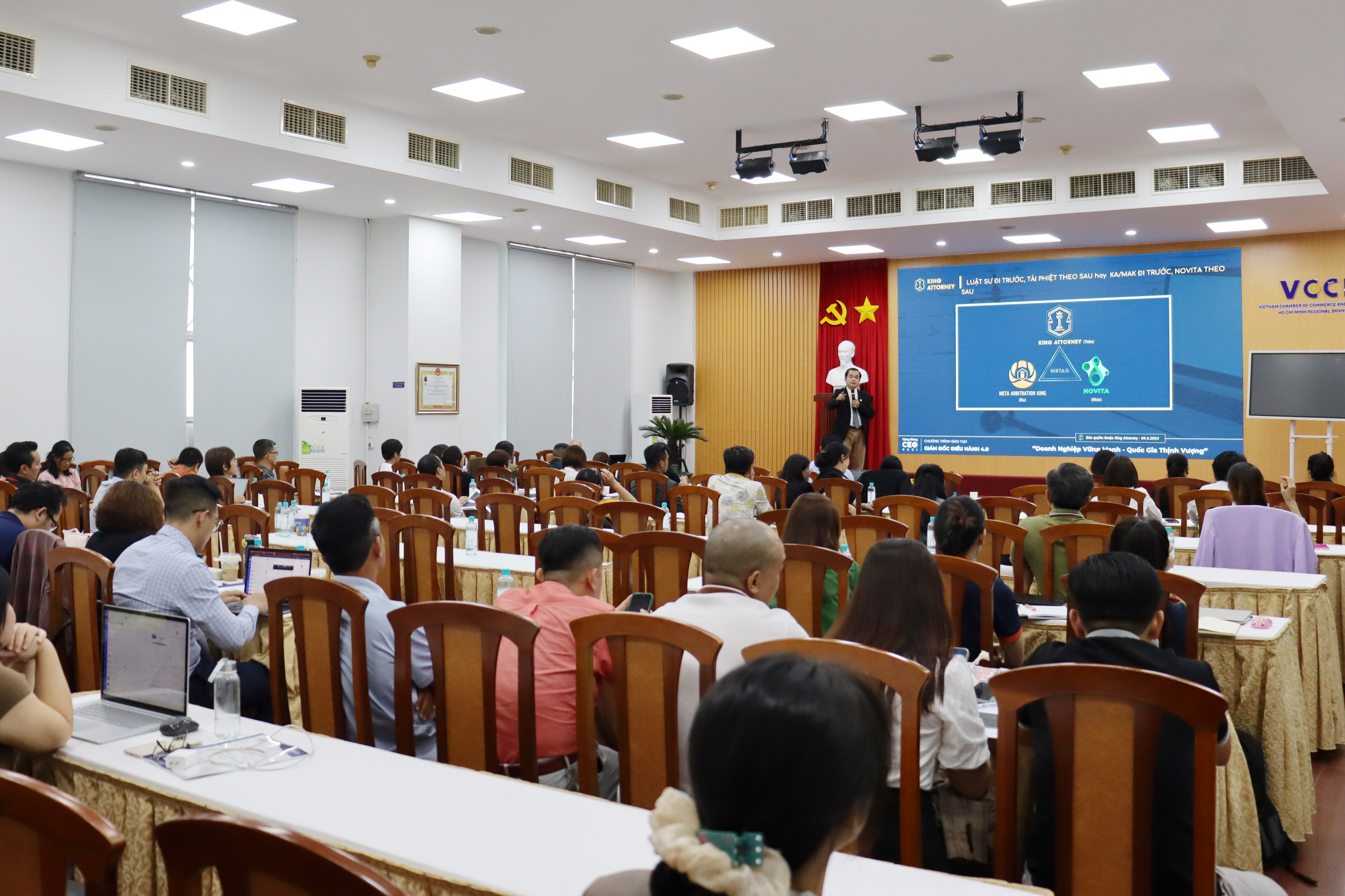 Ngày 16/08/2025 vừa qua, tại hội trường VCCI TP.HCM, trong khuôn khổ Chương trình đào tạo “Giám đốc điều hành doanh nghiệp CEO 4.0 trong kỷ nguyên AI – Năm 2025”, do Liên đoàn Thương mại & Công nghiệp Việt Nam (VCCI) tổ chức, công ty Cổ phần King Attorney (KA) đã vinh dự tham gia với vai trò diễn giả chuyên đề, mang đến những tri thức mới mẻ và thực tiễn dành cho thế hệ CEO Việt Nam.