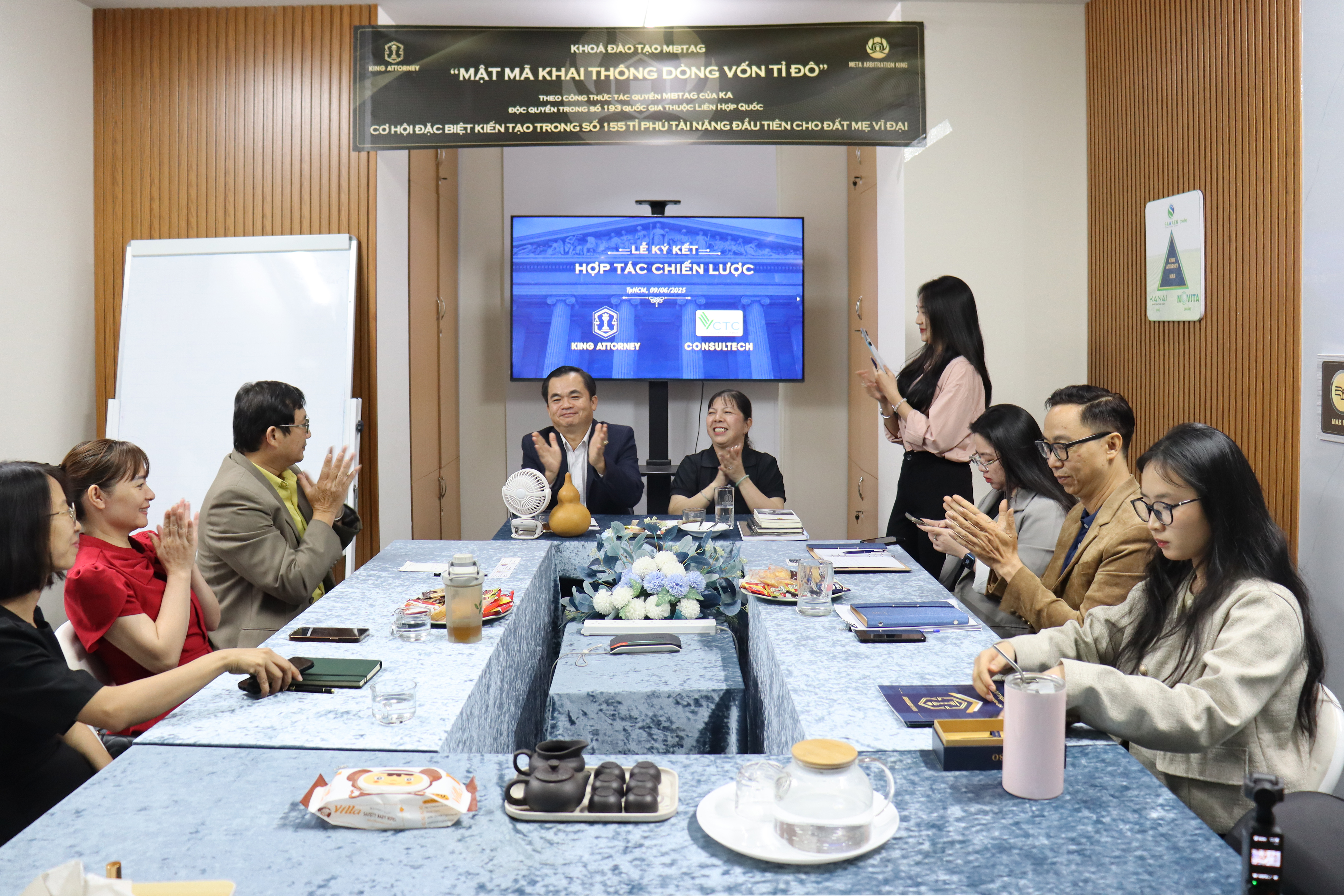 Vào lúc 17h00 ngày 09/06/2025, Công ty CP King Attorney (KA) vinh dự ký kết Biên bản Ghi nhớ hợp tác (MOU) với Công ty Cổ phần Consultech đại diện ông Lê Châu Hải Vũ - Tổng Giám đốc công ty. Sự kiện diễn ra trong không khí hân hoan, trang trọng tại văn phòng chính của King Attorney, đánh dấu một bước tiến quan trọng trong việc hợp tác giữa các bên nhằm tích hợp và phát huy thế mạnh của hai bên trong hành trình giúp cho các doanh nghiệp Việt phát triển bền vững và vươn tầm quốc tế.