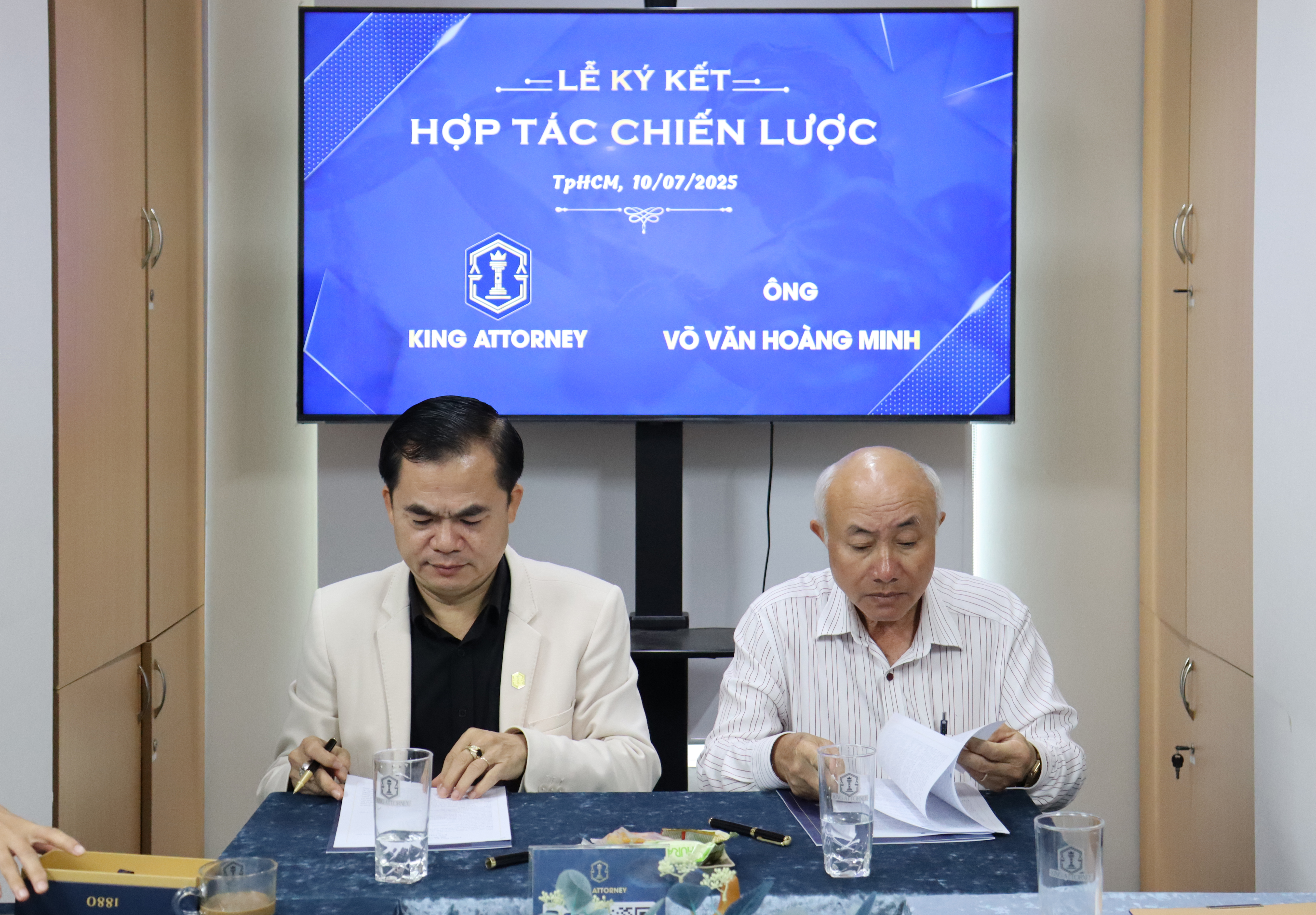 LỄ KÝ KẾT HỢP TÁC GIỮA CÔNG TY CỔ PHẦN KING ATTORNEY VỚI ÔNG ĐẶNG QUANG TRUNG - NHÀ BÁO CỦA BÁO PHÁP LUẬT VIỆT NAM, ÔNG VÕ VĂN HOÀNG MINH - TRƯỞNG DỰ ÁN PHÁT TRIỂN KINH TẾ CỘNG ĐỒNG TẠI VIỆN KINH TẾ VÀ QUẢN LÝ THÀNH PHỐ HỒ CHÍ MINH