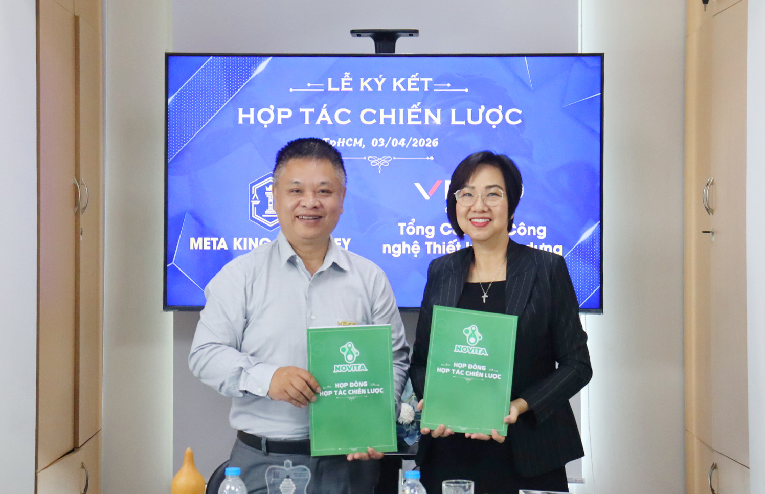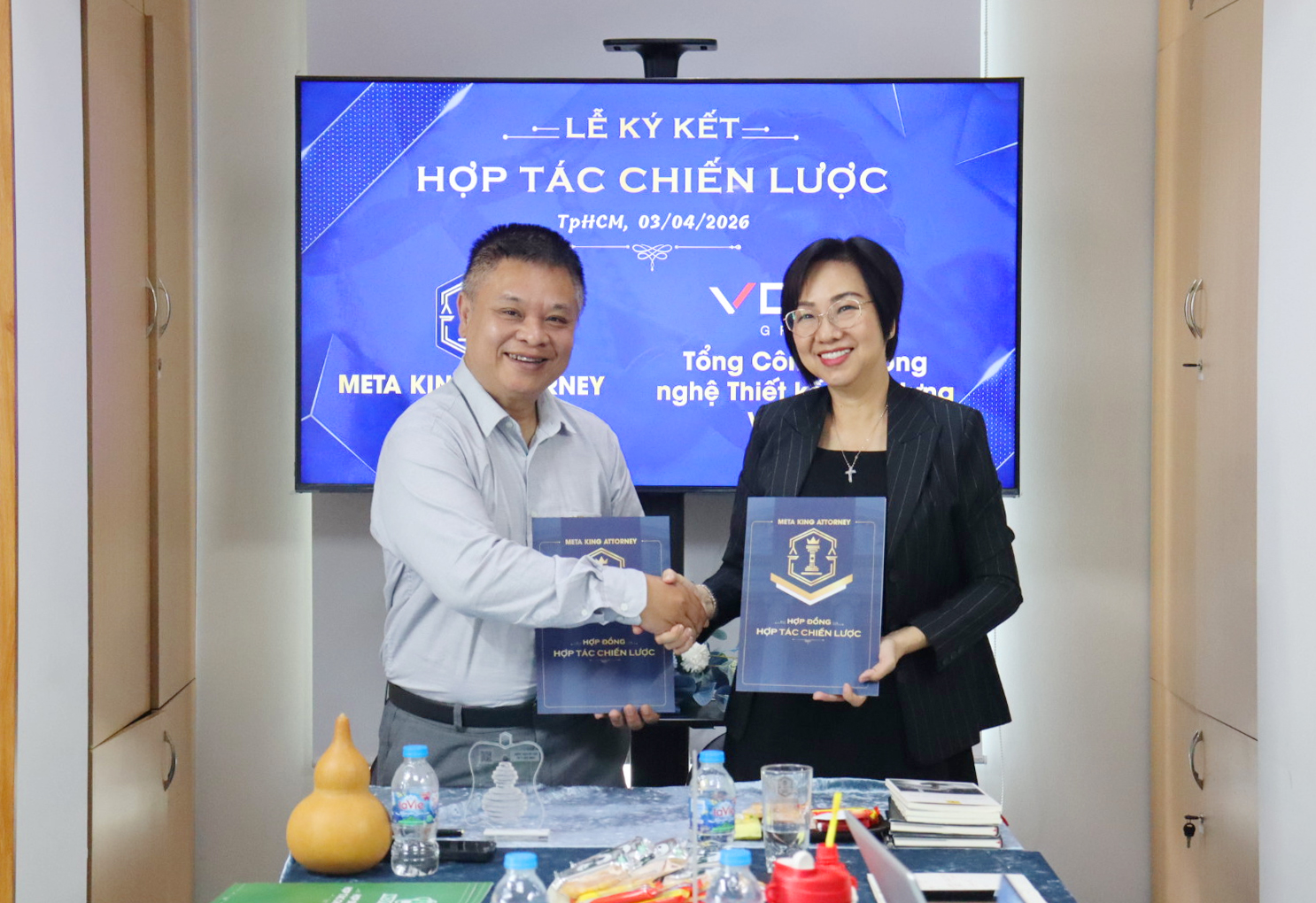 Sáng ngày 03.04.2026, Công ty Cổ phần Meta King Attorney (MKA) và Novita Group đã tổ chức lễ ký kết biên bản ghi nhớ hợp tác (MOU) với Công ty Cổ phần Tổng Công ty Công Nghệ Thiết Kế Xây Dựng Việt Nam (VDCD) – một trong số những đối tác chiến lược quan trọng về Công nghệ để đẩy mạnh triển khai Đề Án Kinh Tế Tái Sinh Quốc Gia.